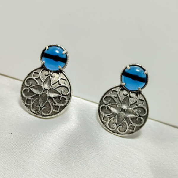Minimalist Blue Stone Floral Pattern Statement Earrings