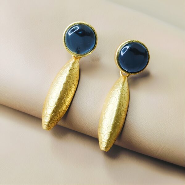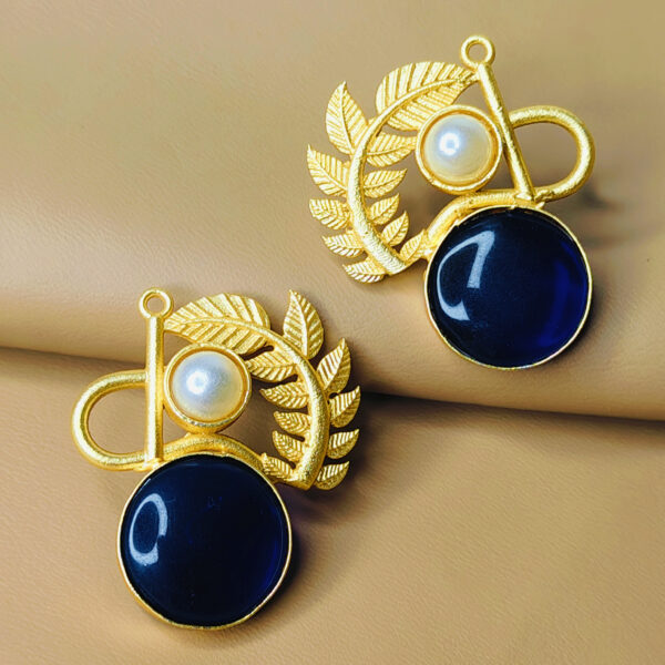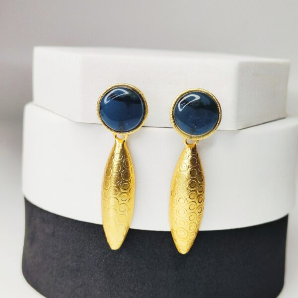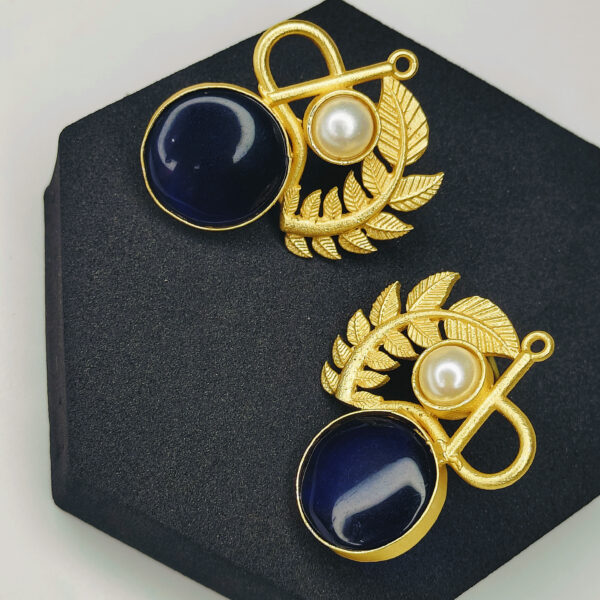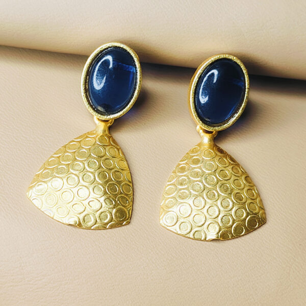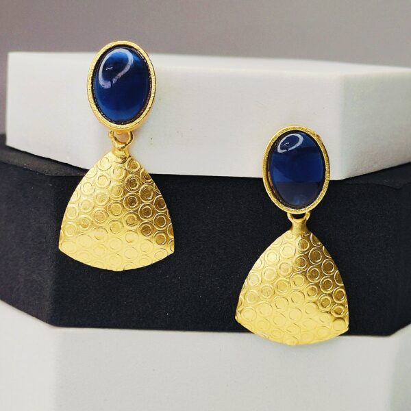 Designer Gold Finish Statement Earrings with Blue Stone