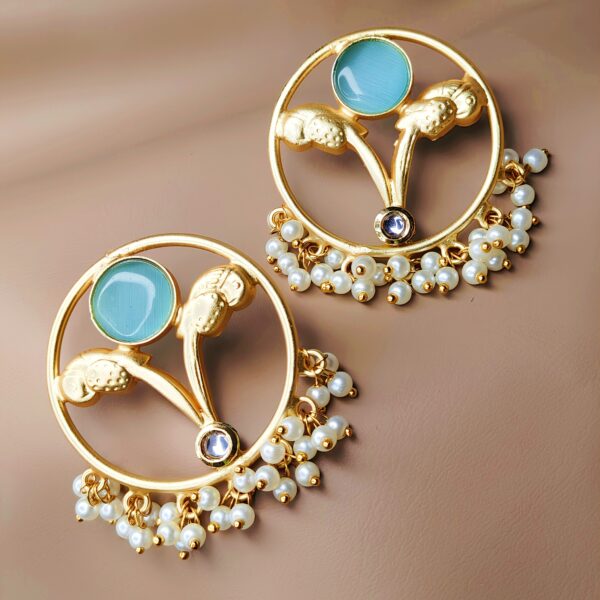 Gold Tone Blue Stone & Pearl Designer Earrings