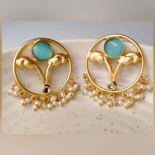Gold Tone Mint Stone Pearl Drop Statement Earrings
