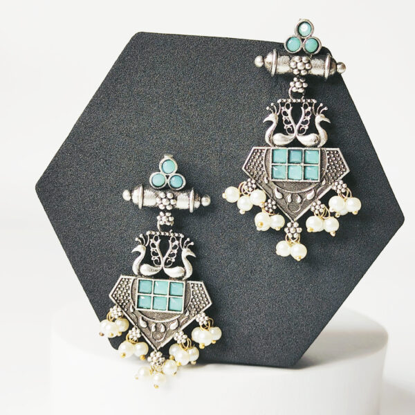 Oxidised Silver Turquoise Stone Pearl Drop Earrings