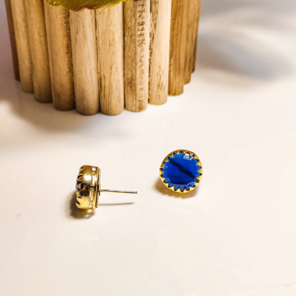 Gold Tone Blue Stone Classic Stud Earrings