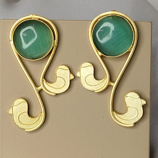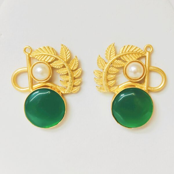 Gold Plated Green Stone & Pearl Leaf Design Earrings