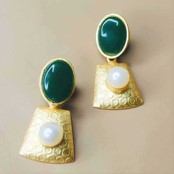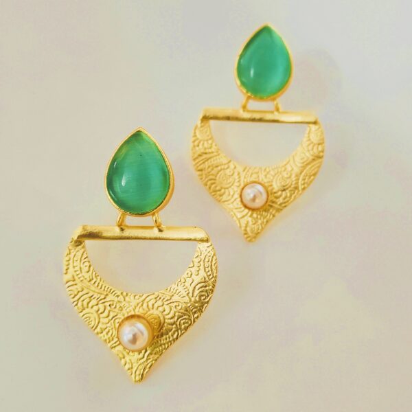 Gold Plated Green Stone & Pearl Statement Earrings