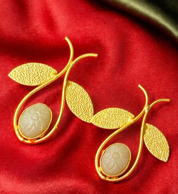 Antique silver polish that exudes a timeless, vintage charm. The top is adorned with a smooth oval stone in a muted grey-green tone, adding a subtle elegance. The intricately designed jhumka is finished with delicate white pearl drops, enhancing its traditional appeal. Perfect for ethnic wear, these earrings bring a graceful and classic statement to any look.