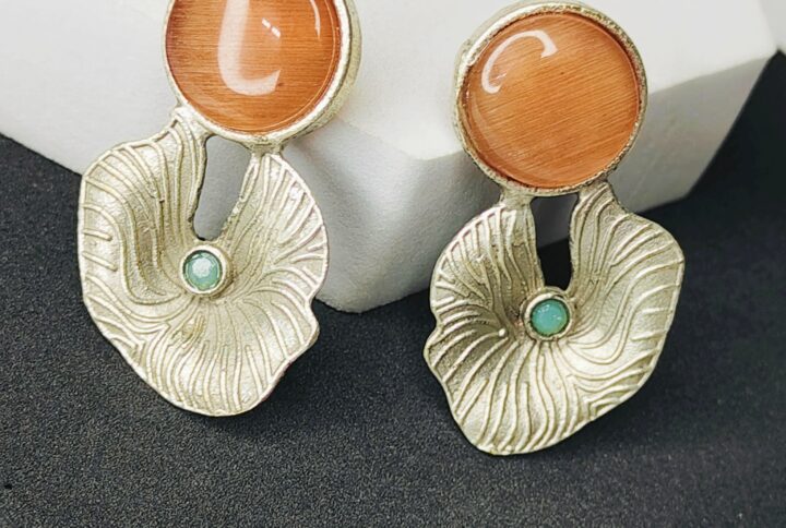 Oxidised silver polish with delicate textured detailing that enhances their graceful design. Adorned with deep ruby red stones, including a teardrop top and floral arrangement within a circular frame, they offer a rich and vibrant look. The intricate pattern adds a perfect blend of modern geometry and traditional charm. Ideal for festive and ethnic styling, these earrings make a sophisticated statement.