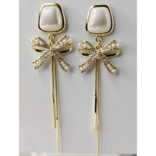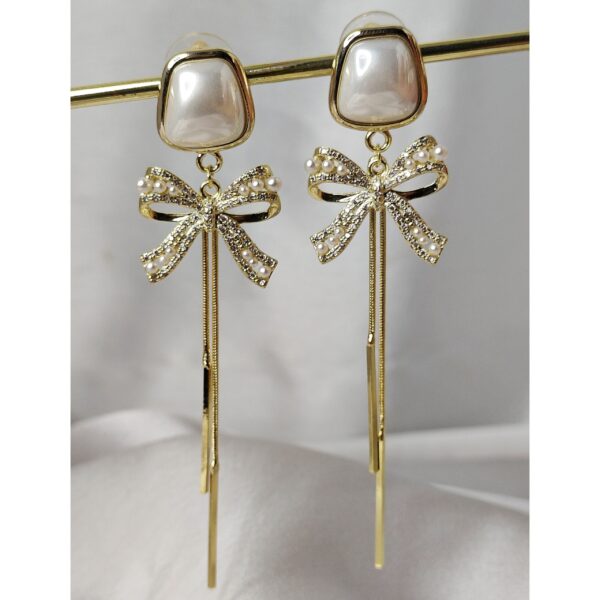 Gold Bow Pearl Chandelier Earrings